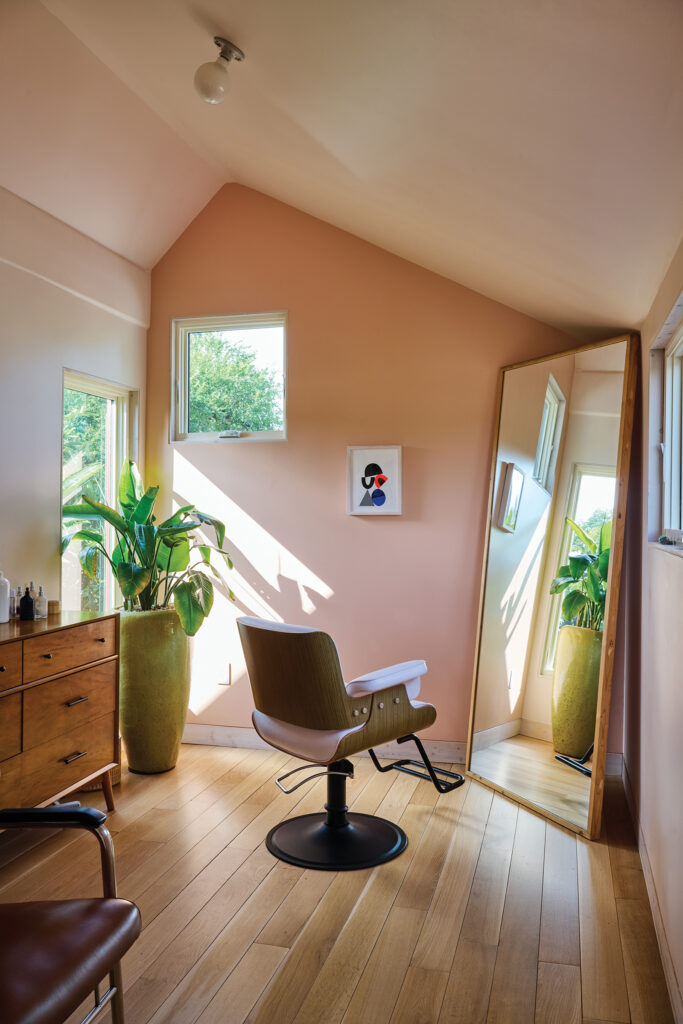 The Perch was under construction when the pandemic hit and the owner’s hair salon was forced to close. Blair deftly pivoted the project to accommodate a temporary workspace for the client and gain permission from the city to include a shampoo bowl in the interior.