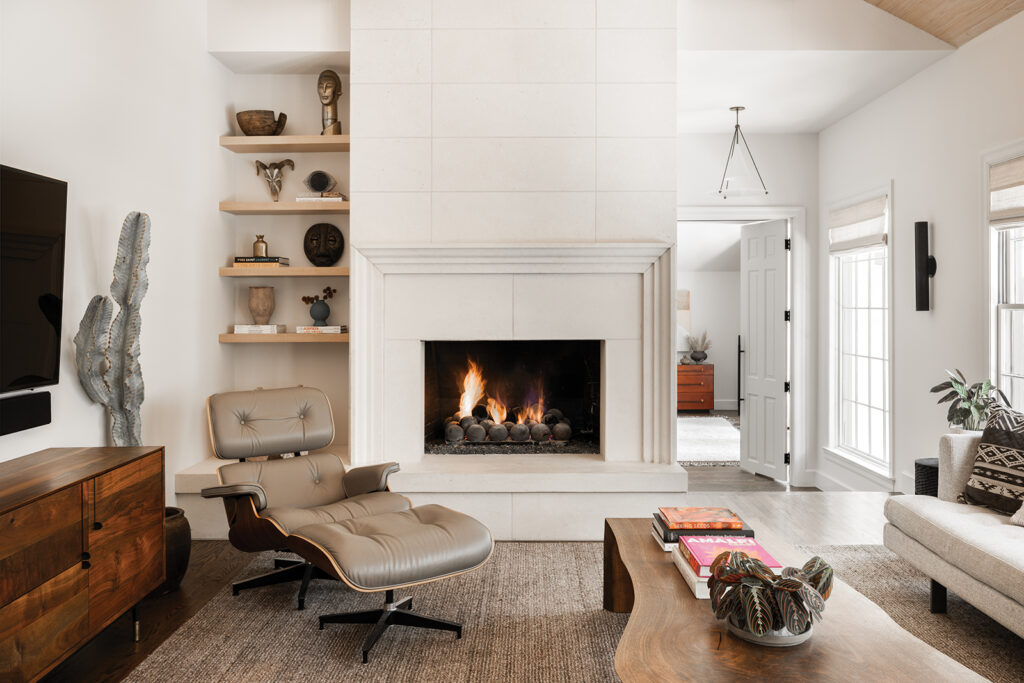 While the family room feels curated, durable fabrics, rugs, and furnishings emphasize Burke’s understanding for practicality. “That coffee table by local Refined Elements has taken a total beating, and it still looks great,” Burke says. The homeowners didn’t want to stress whenever their kids were in that room having a movie night, or eating, or drawing. “Nothing is too precious. This zone is for everyone, where the kids can kind of romp around,” says Burke.