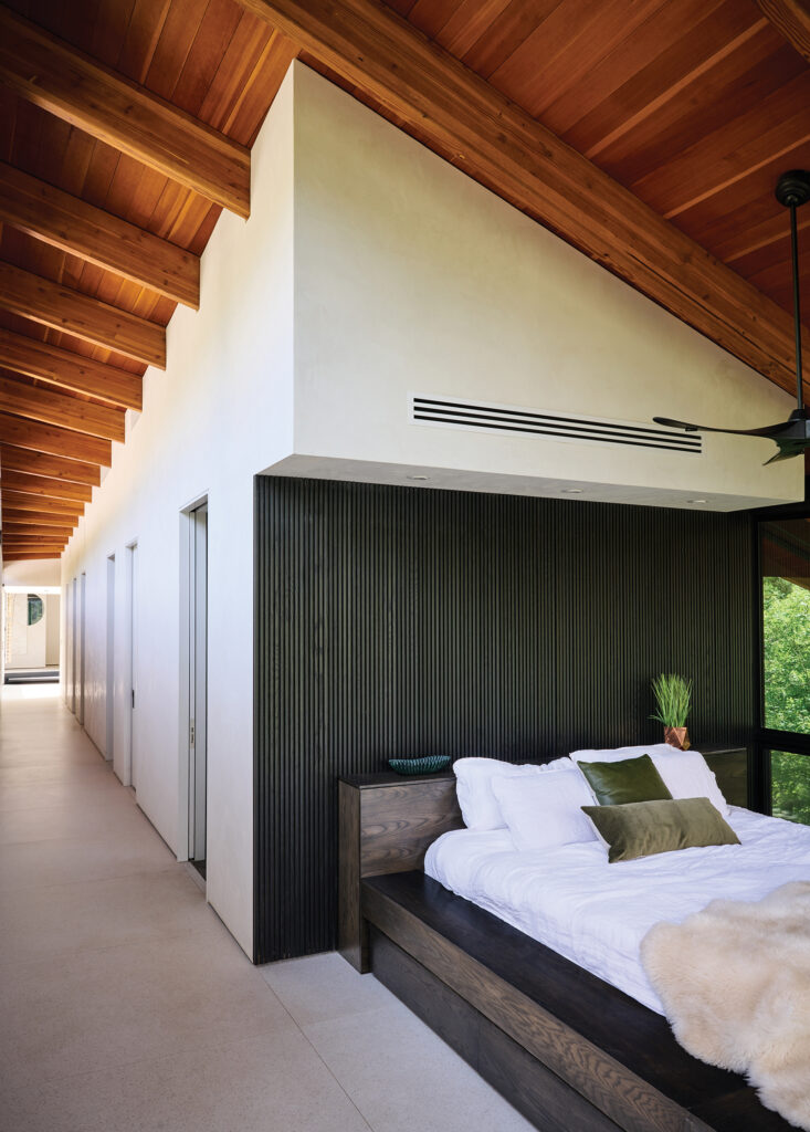 “I didn’t want the long view,” Mandel says. “Most projects look out over the trees, but I wanted the intimate feeling that we are being hugged by nature. I wanted to be in the trees.”
